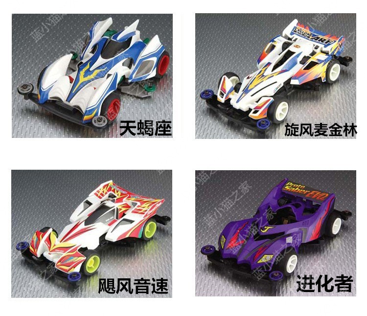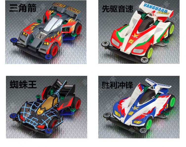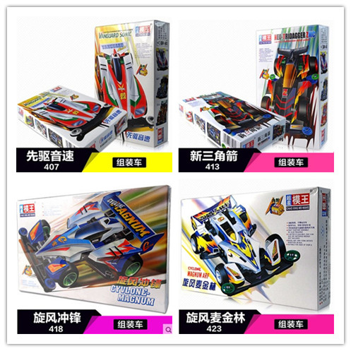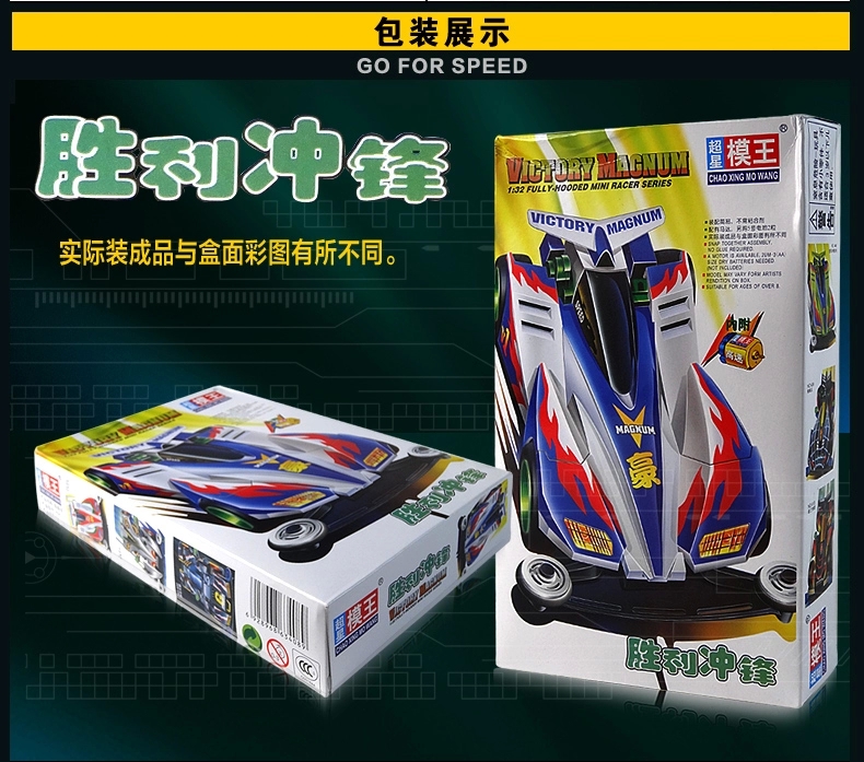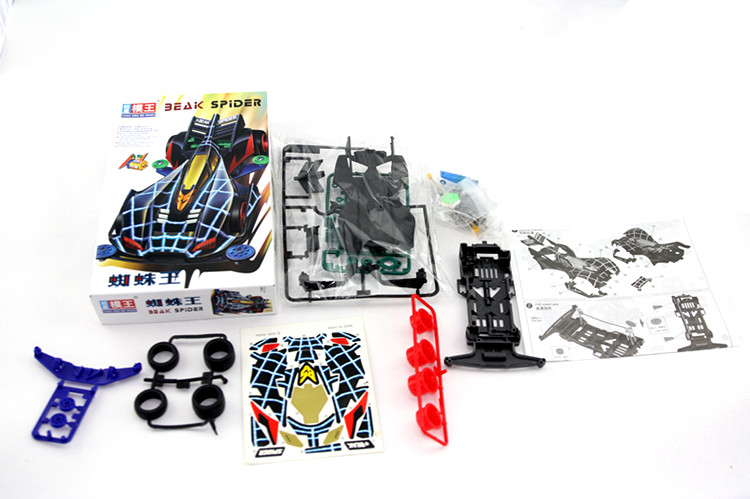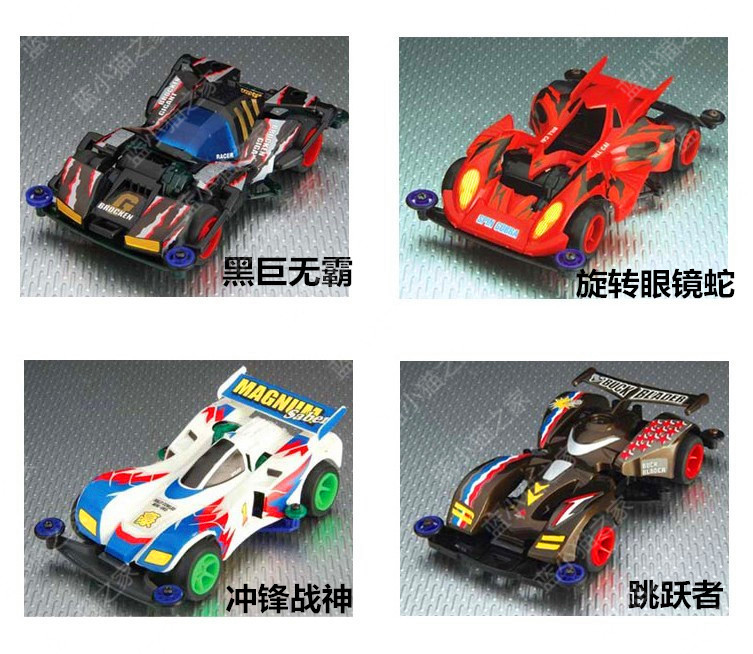 产品介绍:超星模王四驱赛车拼装模型(动画片四驱兄弟款式),怀旧精典,内附模王高速马达,装配简易,不需粘合剂,超低底盘,迅速而稳定。另购五号电池2节。南孚电池效果更好。同类有多款